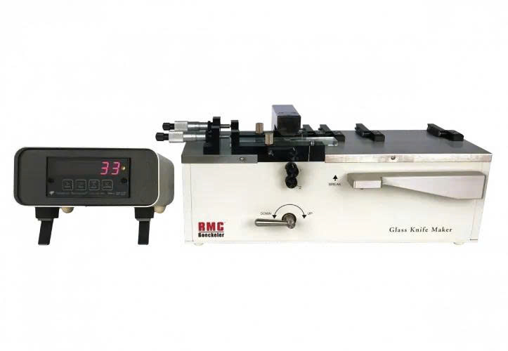 Máy làm dao thủy tinh GKM2 sản xuất dao thủy tinh lưỡi thẳng có độ tái tạo cao nhất hiện có. Với phương pháp bẻ cân bằng kết hợp với đầu đọc cảm biến áp suất cho khả năng tái tạo chính xác áp suất bẻ, GKM2 là máy làm dao được nhiều phòng thí nghiệm ưa chuộng. GKM2 cũng là máy làm dao thủy tinh duy nhất trên thị trường có khả năng sản xuất dao thủy tinh dày tới 12mm.